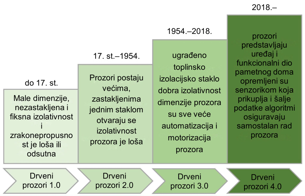 Ulazimo u novu eru drvenih prozora – drveni prozori 4.0 čiji su razvoj i integrirane tehnologije usko povezane s granama industrije 4.0. Drveni prozori više neće biti samo važan dio ovojnice zgrade, već aktivni pametni uređaj koji će biti sposoban za znatno više od onoga što trenutno mogu najsuvremeniji drveni prozori. Uključit će se drugačiji materijali, poboljšat će se njihova svojstva, a korištene tehnologije omogućit će povezivanje proizvoda drvenih prozora s internetom stvari.