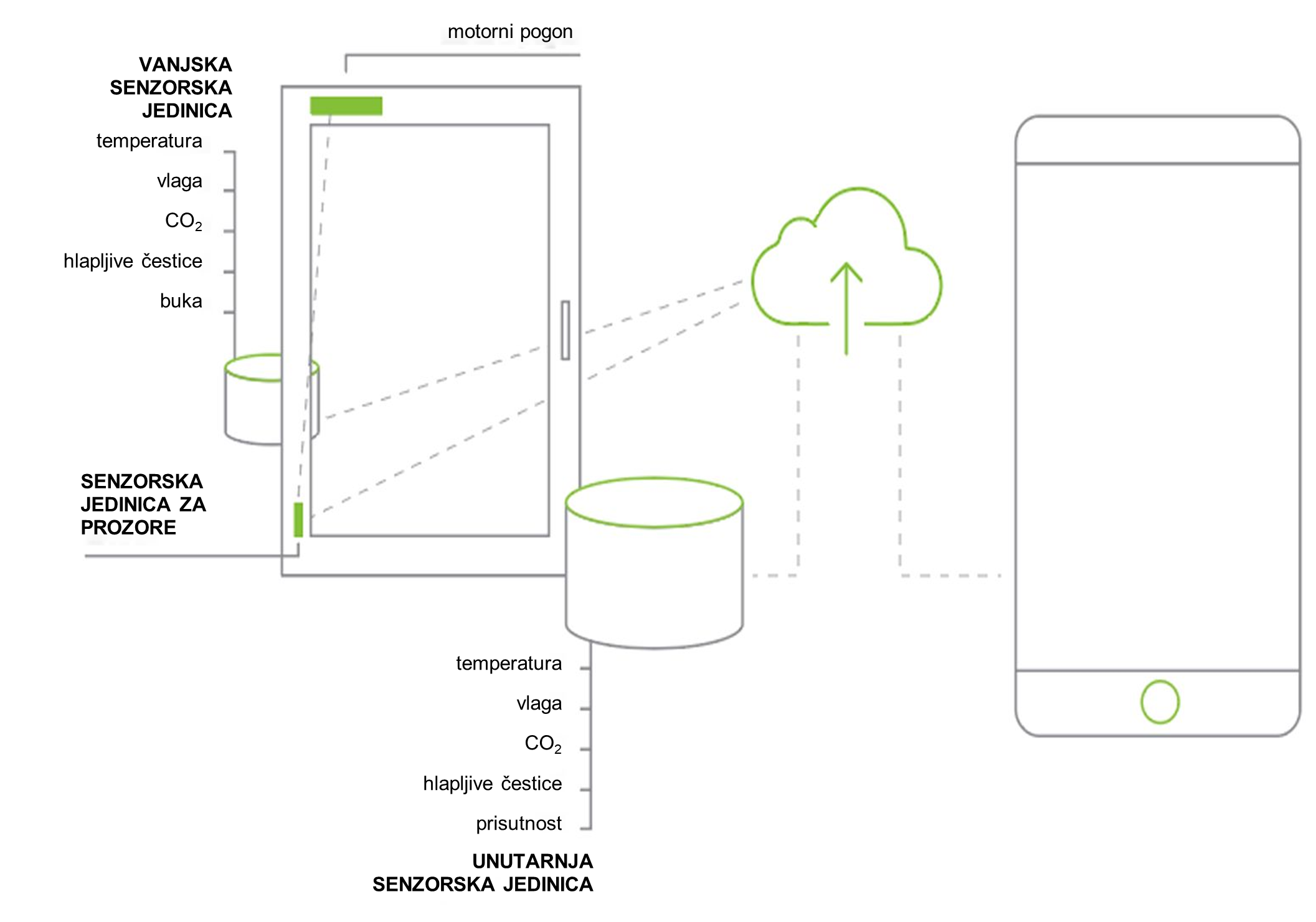 Automatizirano upravljanje stolarijom zahtijeva nadogradnju i opremanje prozora s motoriziranim otvaračem i senzorom za položaj prozora. Za dobivanje stvarnih podataka o razini vlažnosti i kvaliteti zraka u prostoriju treba ugraditi unutarnju senzornu jedinicu, a uz nju, za usporedbu vrijednosti unutar i izvan zgrade, treba ugraditi i vanjsku senzorsku jedinicu. Pomoću njih prozor može automatski operirati na temelju naredbi za obradu i prosljeđivanje podataka putem mobilne aplikacije.