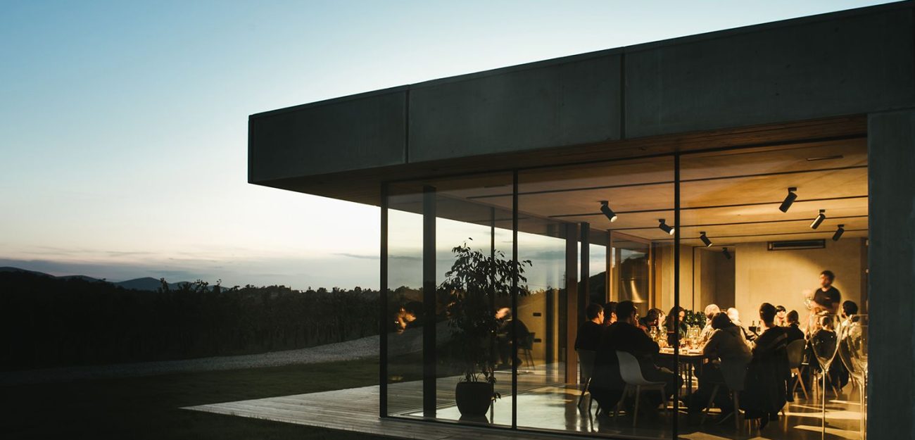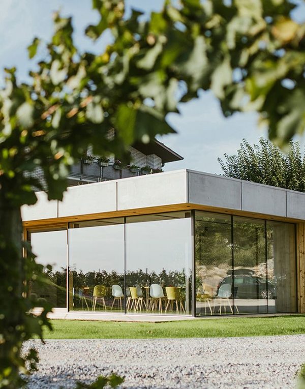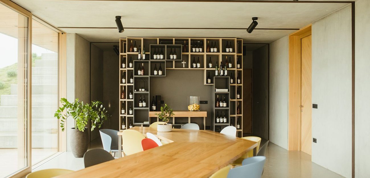 Zadatak arhitekata bio je osmisliti odvojen degustacijski prostor gdje gostima nude autentičnu prezentaciju mladih vipavskih vinara. Osim vina i hrane novouređeni prostor otvara atraktivan pogled na dolinu koji sveobuhvatno zaokružuje doživljaj posjetitelja. Objekt je pravokutnog oblika i čistih linija. Kroz veliki ugaonu staklenu stijenu i terasu s nadstrešnicom fluidno prelazimo iz unutarnjeg u vanjski ambijent. Stakleni omotač okružuje vidljiva betonska konstrukcija, a osjećaj topline i doma daje drvena obloga u unutrašnjosti objekta. (Vir: OHS, foto: Nejc Bole)