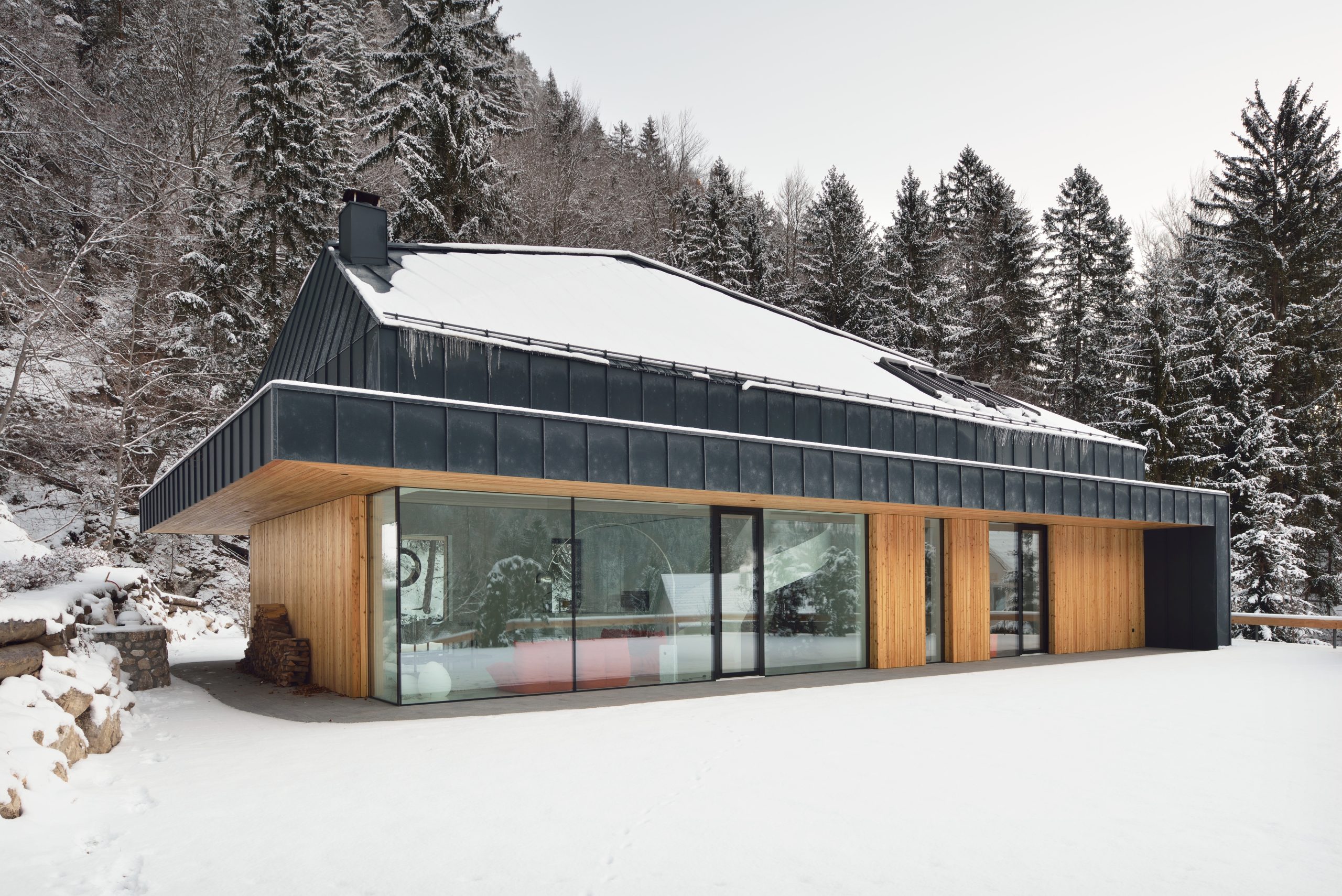 Kuća za odmor na rubu šume za koju su vlasnici željeli da bi osjetili puls okolne prirode u svim godišnjim dobima. To smo postigli velikim staklenim površinama.