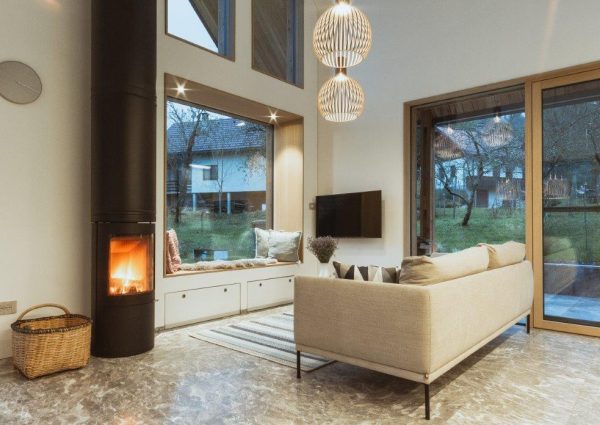 Na kostelskom dijalektu bale, bale znači „dođi, dođi“. Kuća tako već svojim imenom poziva u udobnost prirode koja je okružuje. Izgrađena je suvremeno, ali uzimajući u obzir lokalnu kulturnu i graditeljsku baštinu. Krovni je pokrov izrađen od troslojnih drvenih šindri ariša, a fasada je prozračivana vertikalnim drvenim lamelama ariša. Zgrada lebdi iznad kamenog postolja od hotaveljskog mramora. Otvoreni središnji prostor visine 7,5 m pruža prekrasan pogled na Kuželjsku stijenu. Glavni element središnjeg prostora je crni kamin. Kao osnovni materijal u unutrašnjosti kuće koristi se masivni hrast. Blagovaonički stol, stolice i stolić za kavu prikazuju preciznu obradu stolarskih majstora, s naglaskom na tvrdoći i veličanstvenosti hrasta. Kuća se nalazi u području Kočevja u Sloveniji. (Foto: Nik Grmovšek).