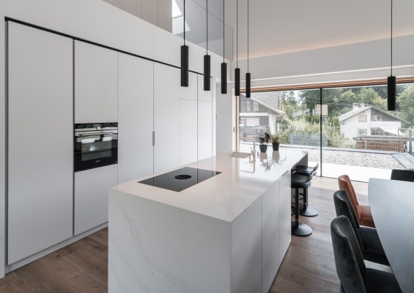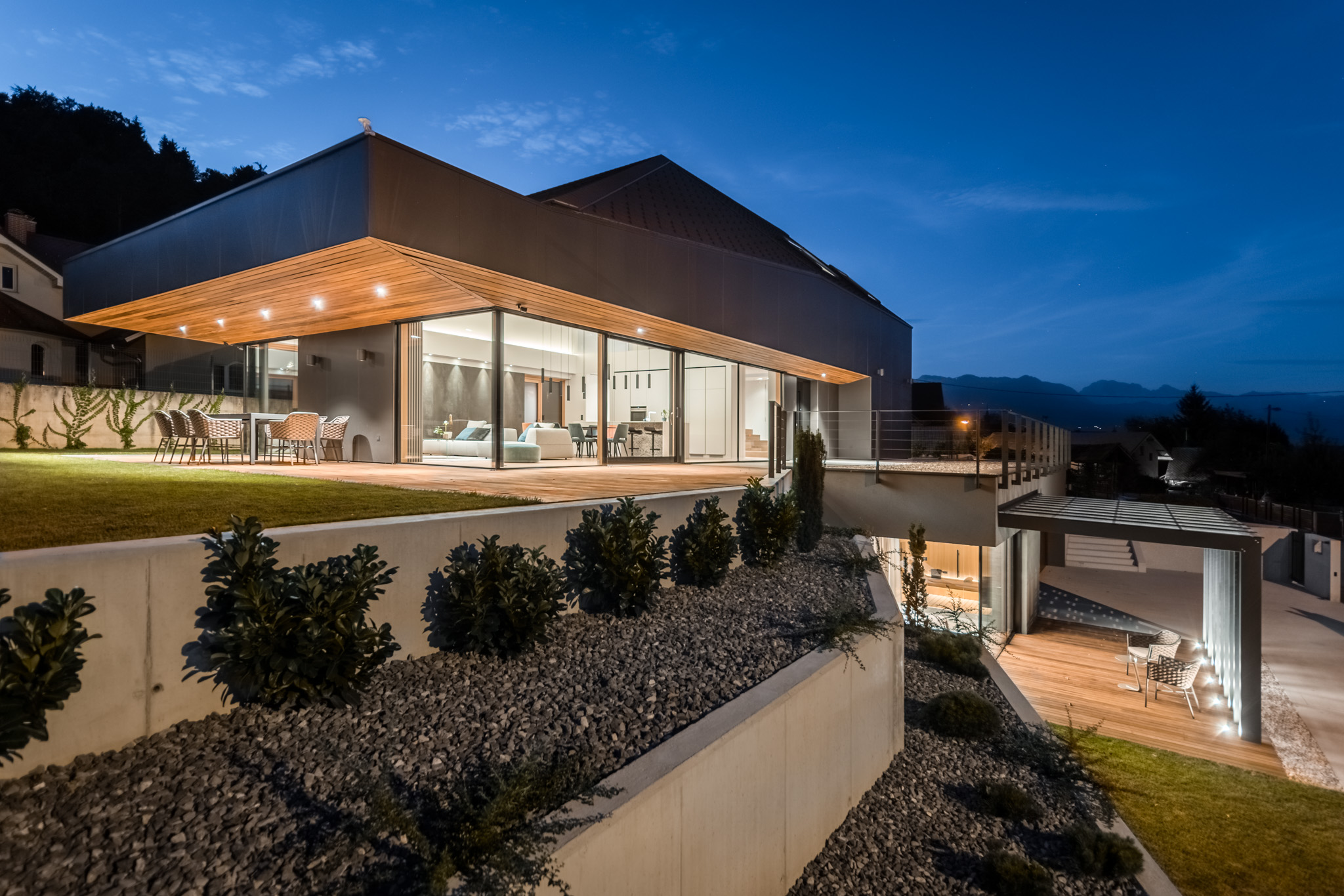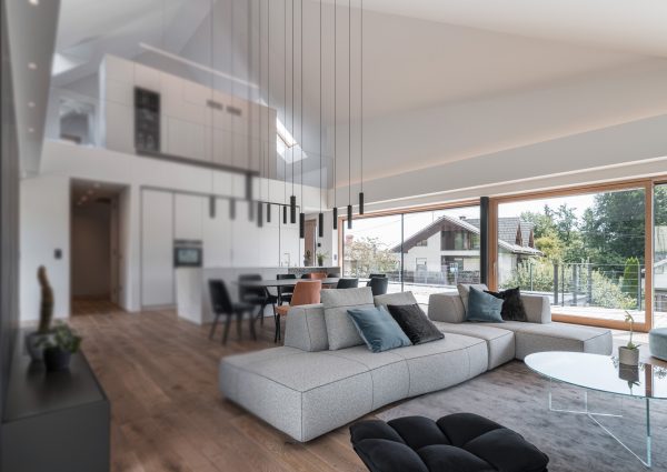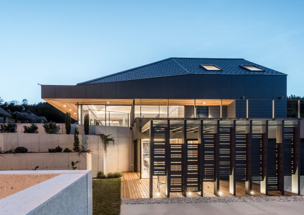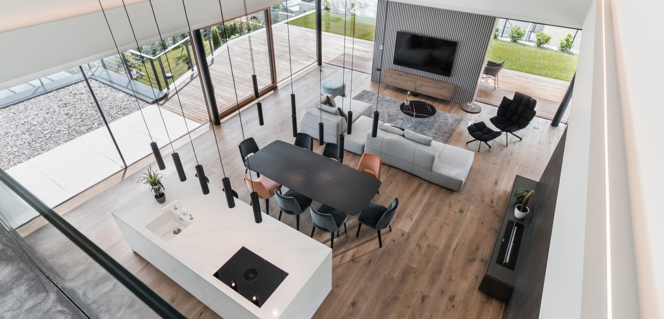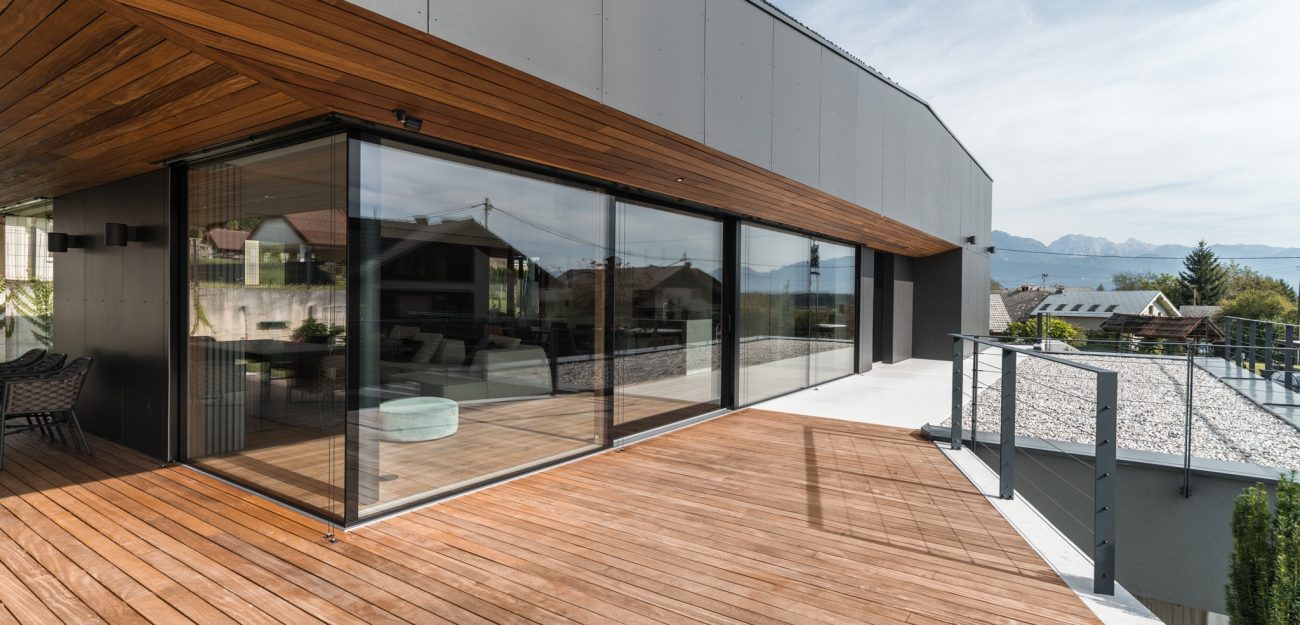 Suvremen privatan objekt s velikim staklenim stijenama. (Foto: Jernej Lah)