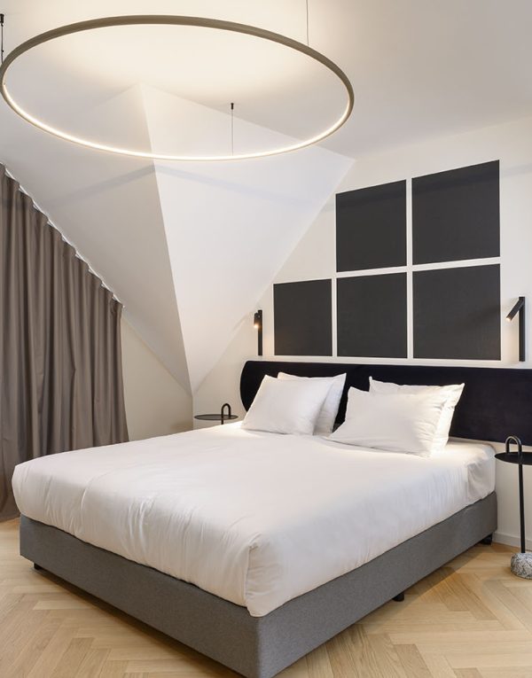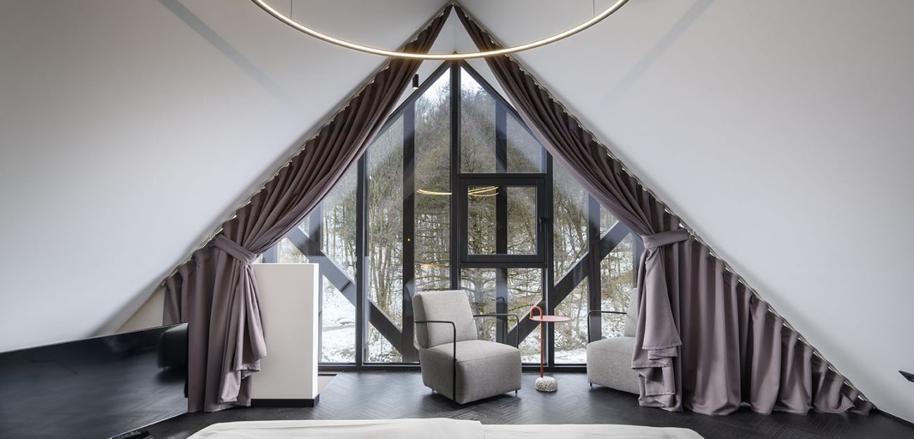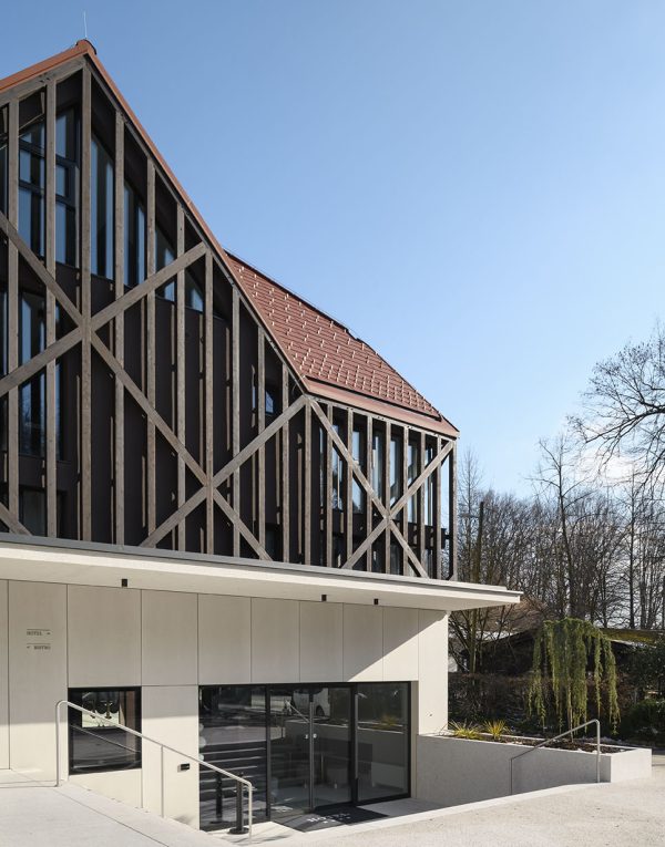 Objekt je projektiran tako da maksimalno iskoristi dopušteni gabarit. Poluetažni pomak i promišljeni tlocrti omogućili su 18 hotelskih soba, od čega dvije suite s lođom i dva apartmana s lođom u potkrovlju. Servisne se prostorije nalaze u podrumu, dok je u prizemlju javni program s djelomično ukopanom recepcijom i kavanom s vrtom. Bajkoviti isprepleti sjena i sunca te vidljivi drveni konstrukcijski elementi vila u susjednoj dolini Rožnoj dolini inspirirali su istraživanje konceptualnog rješenja fasade. (Vir: OHS, foto: Miran Kambič)